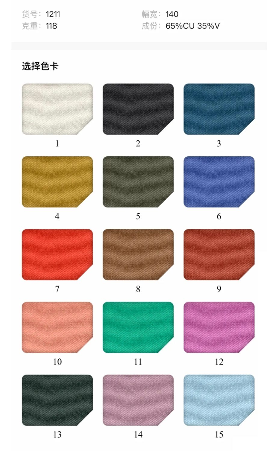 | 120d Cupro viscose plain weave | 1211 | 65%cupro 35%viscose | 118g/m2 | 140cm | https://pigeonwishes.com/wp-content/uploads/1970/01/1211-scaled.jpg | |