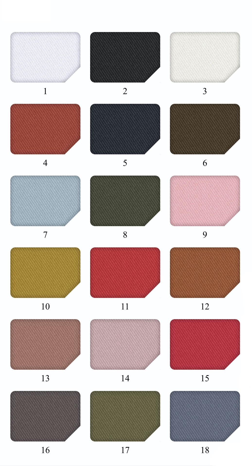 The table below lists fabrics that we consistently stock; however, certain colours shown on the colour card may occasionally be out of stock. Please verify the availability of your desired colour with us prior to making a purchase. You can type the SKU in the search bar on top of this page to reveal the products page.